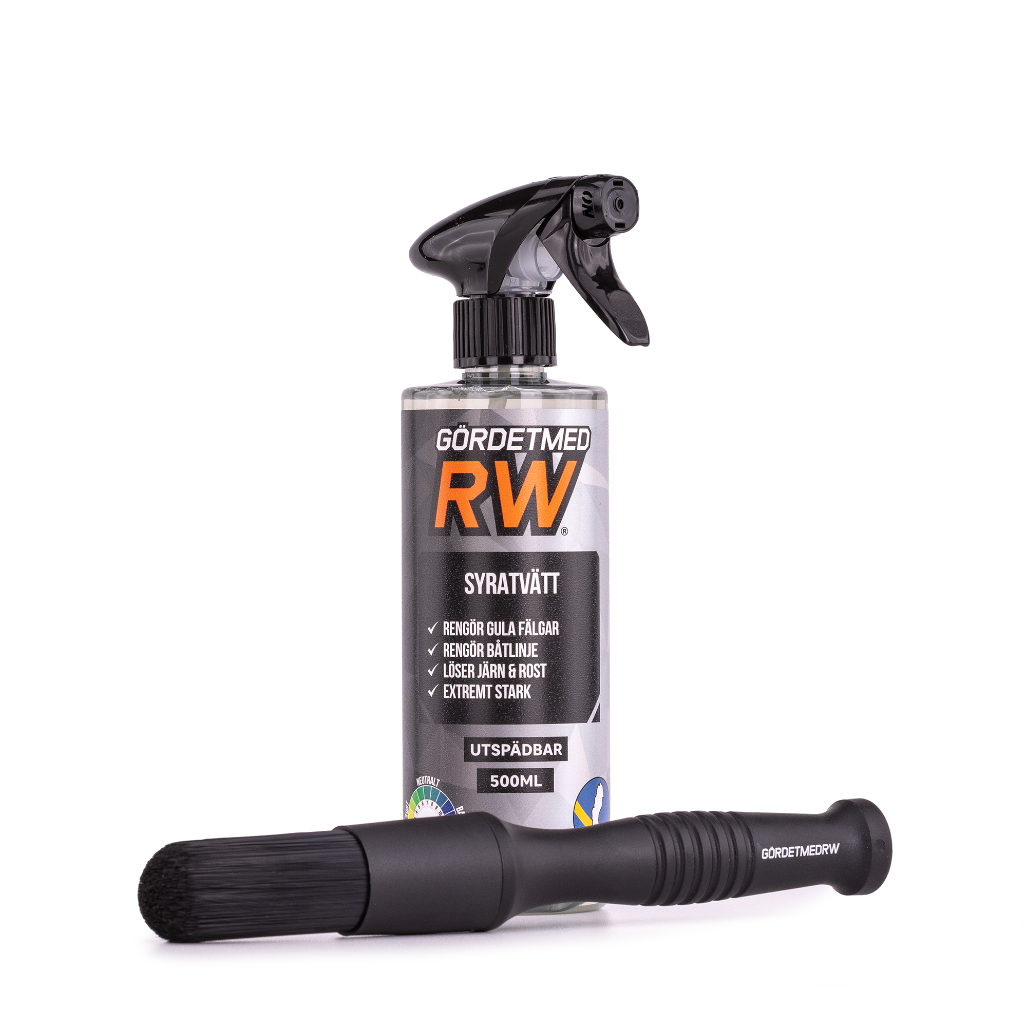 Detta är något som du behöver om du vill kunna få dina fälgar riktigt glänsande ren. Syratvätten behöver en lämplig borste för att kunna göra sitt riktiga jobb. Här får du med den borsten också. Köp detta paket och spara pengar.