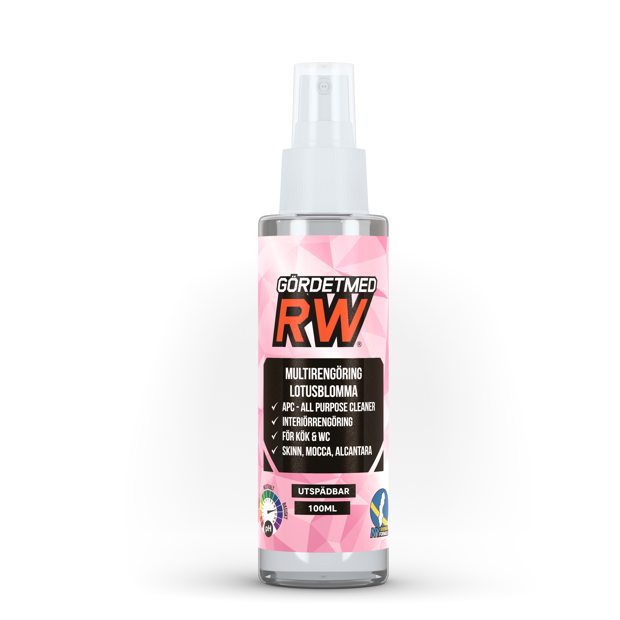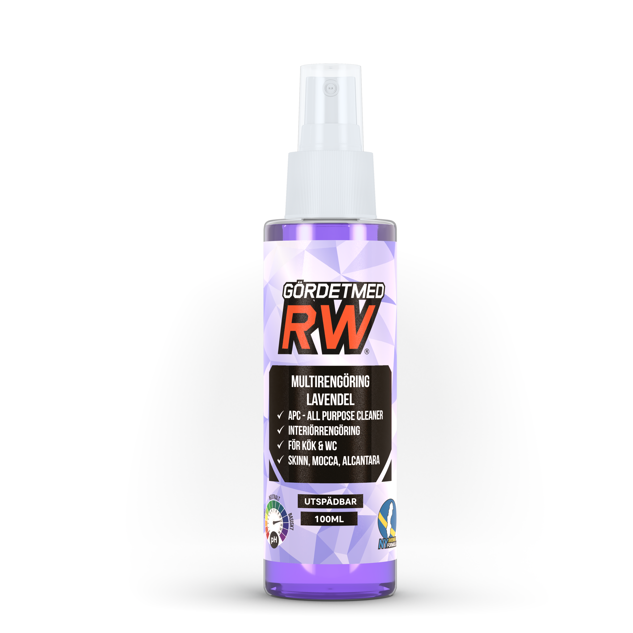- Spraya Multirengöring direkt på ytan eller i en mikrofiberduk.